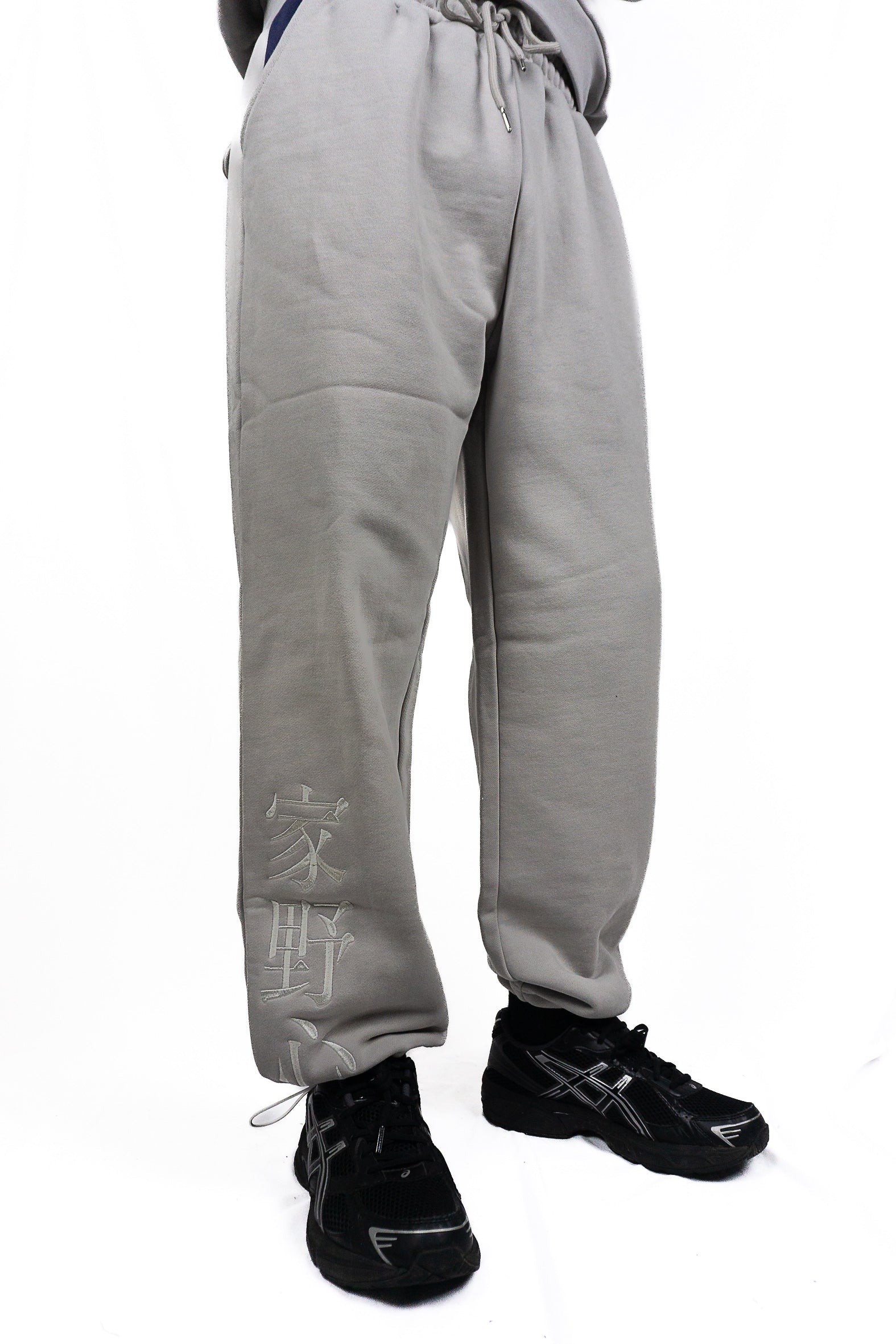 Kanjis brodés ton sur ton en bas de la jambe droite
